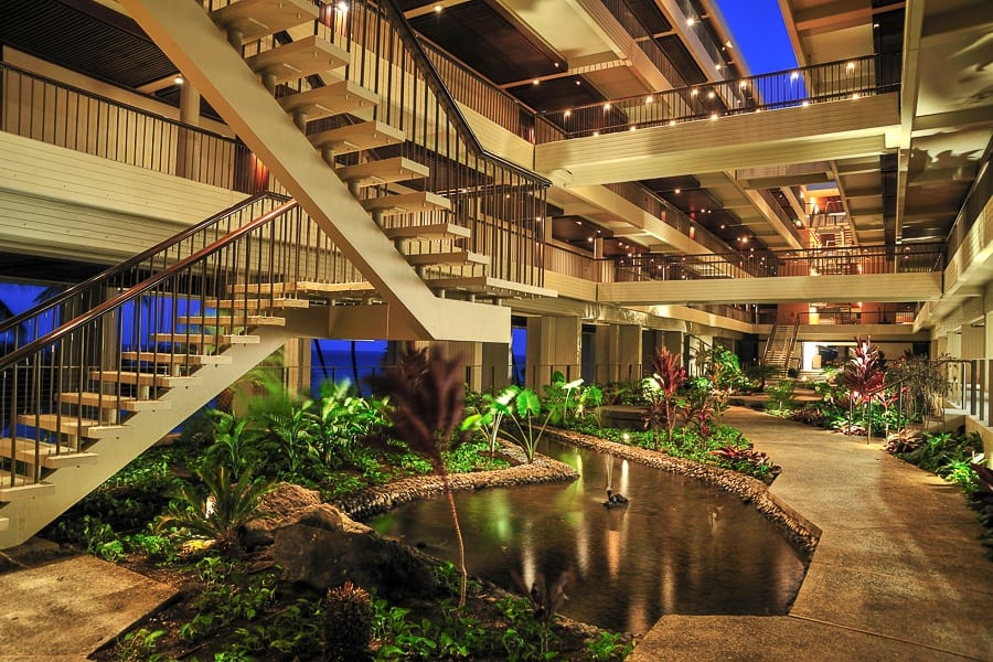 Wow! This hotel looks absolutely stunning, so clean and crisp. I especially love the mid-century modern mixed with Hawaiian Island tropical feel as well as the koi-filled water features. The beach looks SO BEAUTIFUL! I’d love to stay here.